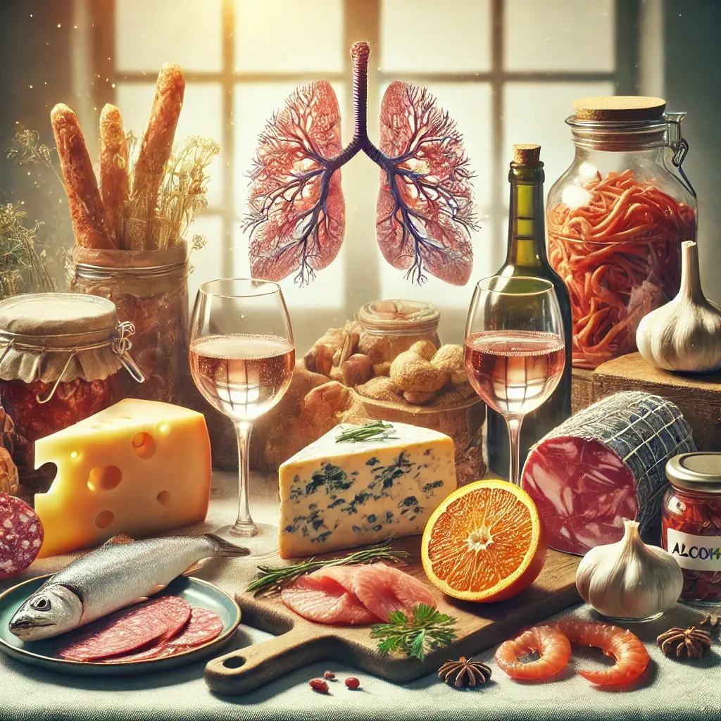 - Cibi fermentati: formaggi stagionati, crauti, vino rosso, birra, yogurt